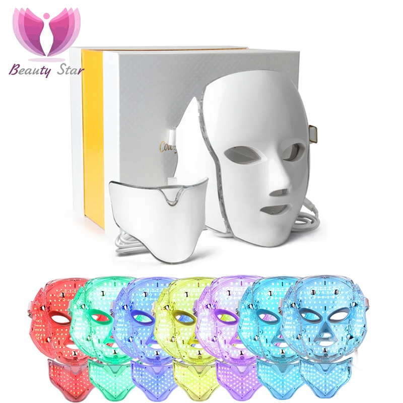 Limited Beauty Star 7 Color LED Facial Neck Mask Micro-current LED Photon Mask Remove Wrinkle Acne Skin Rej