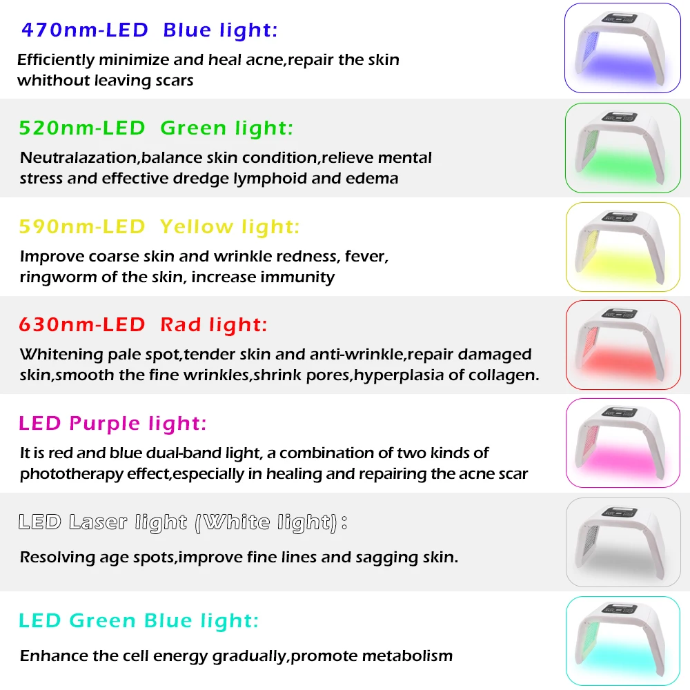 Best Professional Photon PDT Led Light Facial Mask Machine 7 Colors Acne Treatment Face Whitening Skin R