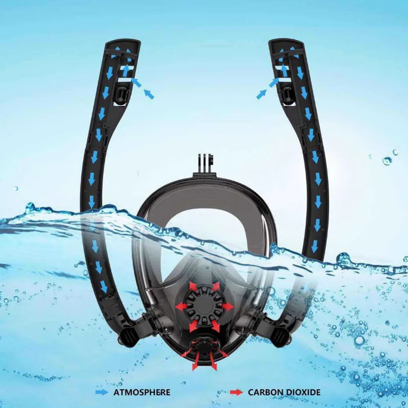 » Free Shipping 2019 New Style Diving Mask All-dry Snorkeling Mask GoPro Anti-fog Camera One-Way Cycle Breathing