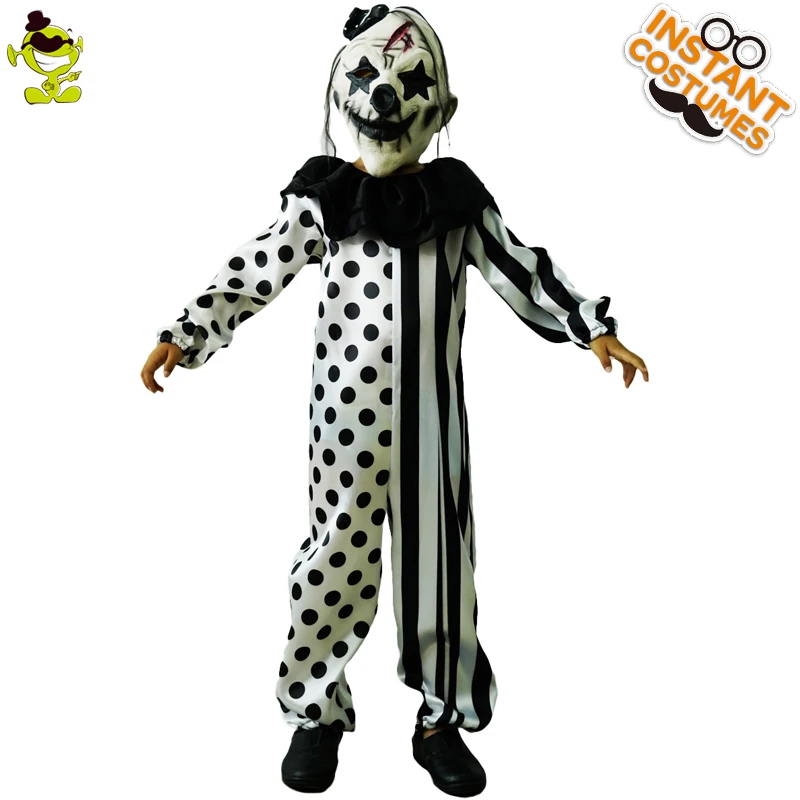 » Free Shipping Halloween Children's Striped Kill Clown Cospaly Party Costumes Kids Jumpsuit Mask Killer Clown Cost
