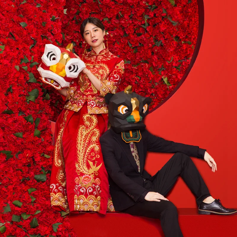 » Free Shipping Lion Mask DIY Creative Handwork Wedding Mask Paper Matrix Cosplay 3D Animal Head Party Mask Stage P