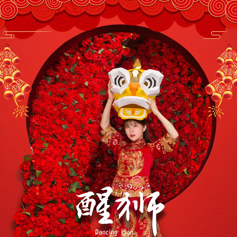 Free Shipping Lion Mask DIY Creative Handwork Wedding Mask Paper Matrix Cosplay 3D Animal Head Party Mask Stage P