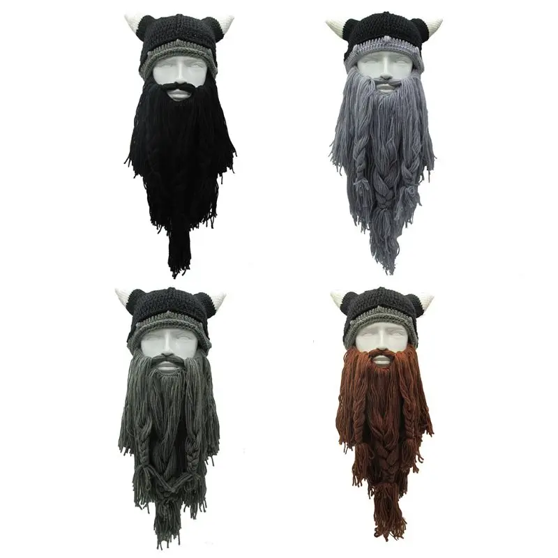 Home » best seller , mask , mask corona » New Adult Crazy Funny Halloween Cosplay Knitted Viking Beard Horn Hat Ski Mask Barbarian Vagabond Vinta