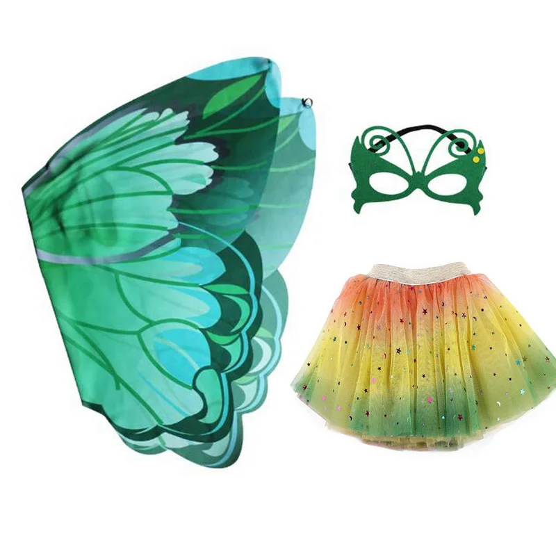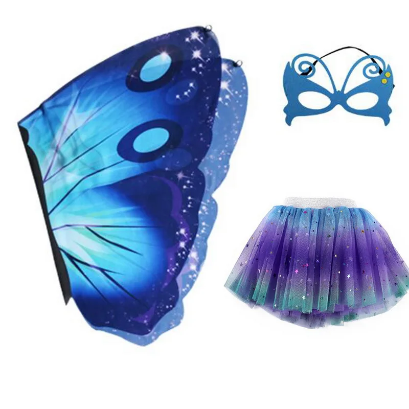 New Halloween Girls Butterfly Print Wings Shawl Scarves Poncho Costume Kids Fairy 3-Layers Tutu Skirts
