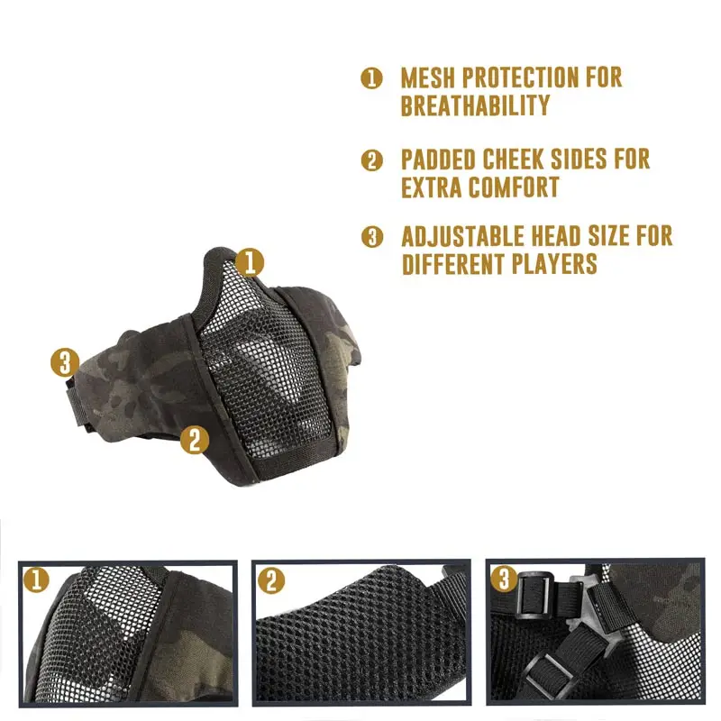 Special OneTigris Tactical Foldable Half Face Mask Protective Mesh Mask for Airsoft Paintball with Adjustab