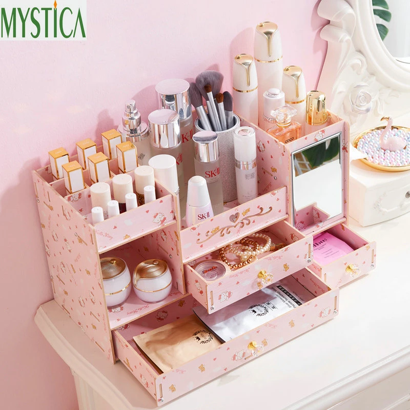 Buy Cosmetic Storage Box Drawer Dresser Mirror Facial Mask Organizer Boxes Makeup Brush Holder Skin Car