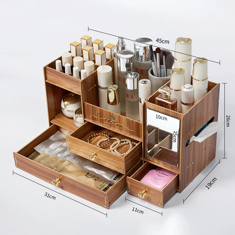 Best Cosmetic Storage Box Drawer Dresser Mirror Facial Mask Organizer Boxes Makeup Brush Holder Skin Car