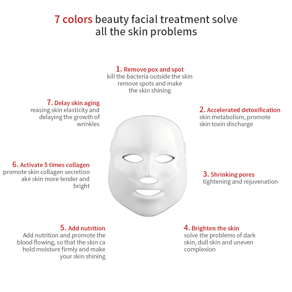 • Get 2 Types 7 Colors Electric Led Facial Mask Face Mask Machine Light Therapy Acne Mask Neck Beauty Led