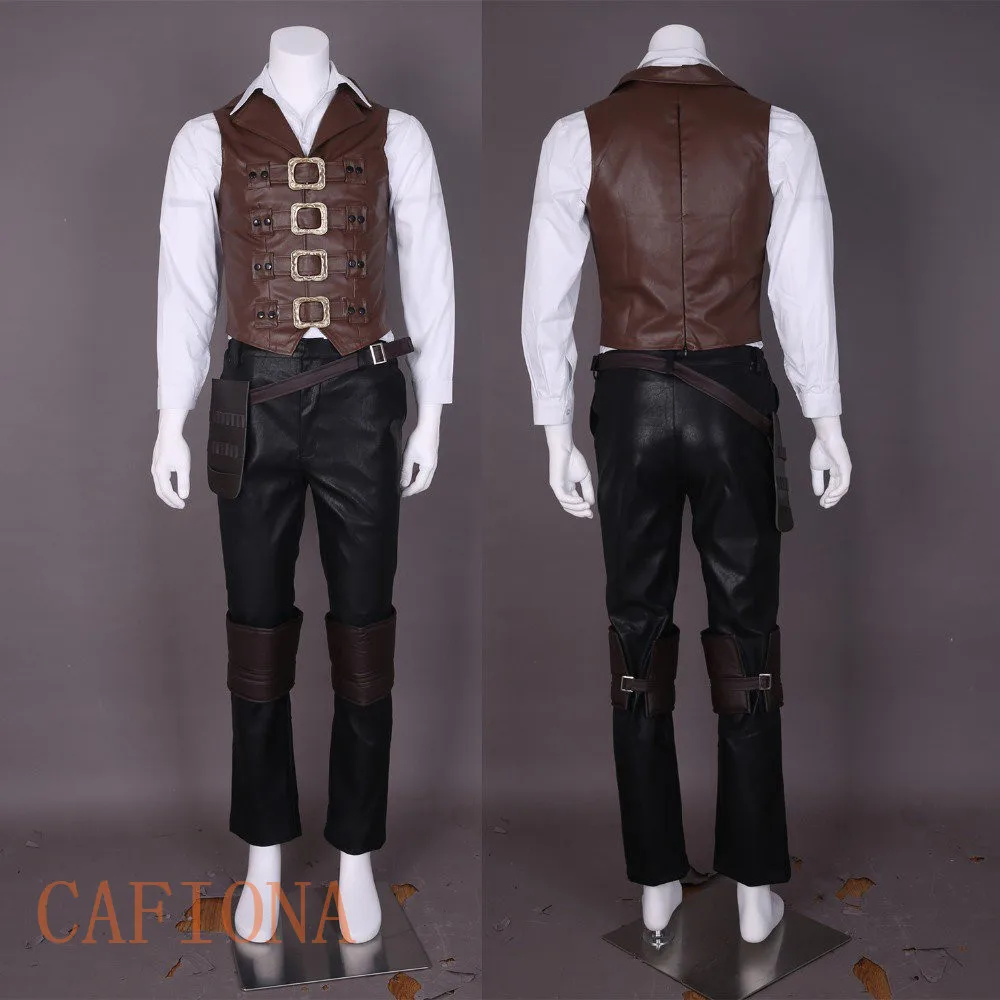 Discount Cafiona Bloodborne cosplay The Hunter Ludwig Cosplay Costume leather vest coat pants hat scarf watc