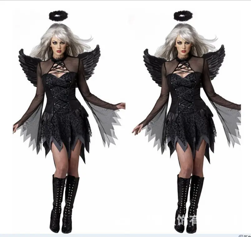 Get Adult Kids Dark Angel Cosplay Costume Halloween Party Demon Princess Dress Dress With Wings And Mas