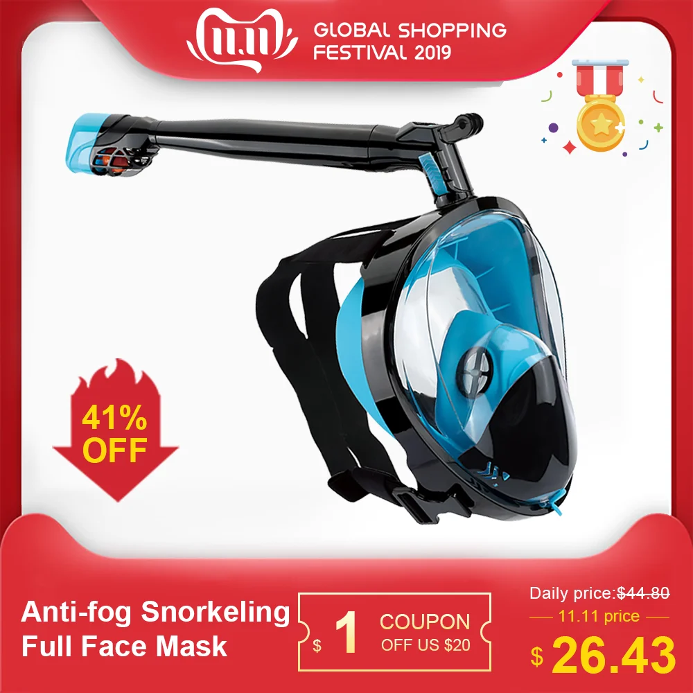 Home » best seller , mask , mask corona » Limited professional Anti-fog Snorkeling Full Face Mask 360° Rotatable Snorkel Diving Scuba Mask with Detac