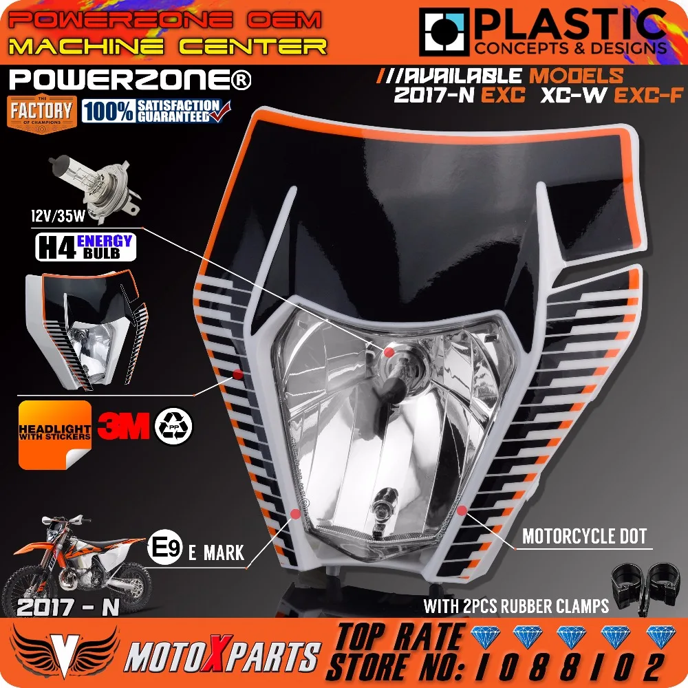 Promo Powerzone Motorcycle Dirt Bike Motocross Headlight Headlamp + 3M Sticker Mask For KTM 6days EXC XCW