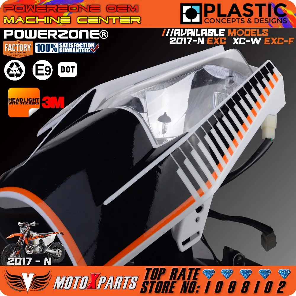 Best Powerzone Motorcycle Dirt Bike Motocross Headlight Headlamp + 3M Sticker Mask For KTM 6days EXC XCW