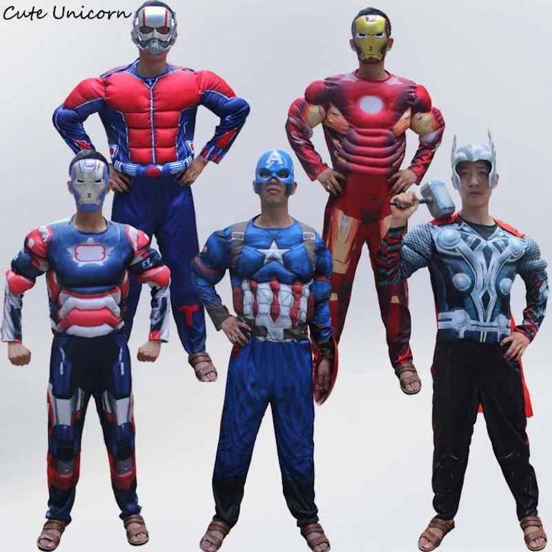 Special Superhero Batman Ironman Antman adults Muscle Jumpsuits Mask Avengers Superman Spiderman Captain On