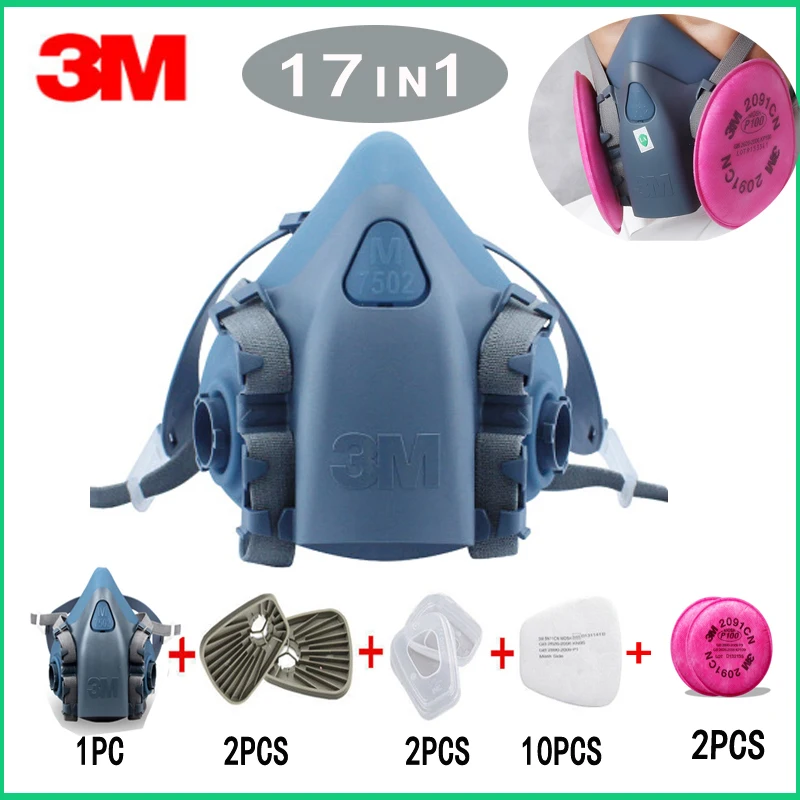 Special 3M 7502 Gas mask 7/9/15/17 in 1 half Face Respirator Spray Painting Protection Respirator Dust mask