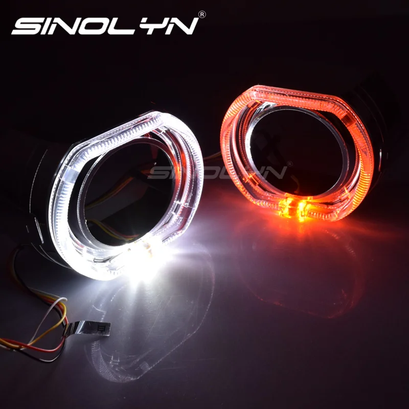 Special Product Square LED DRL Angel Eye Integrated Bezel Shrouds Masks W/WO Switchback Amber Turn Signal Lamps For