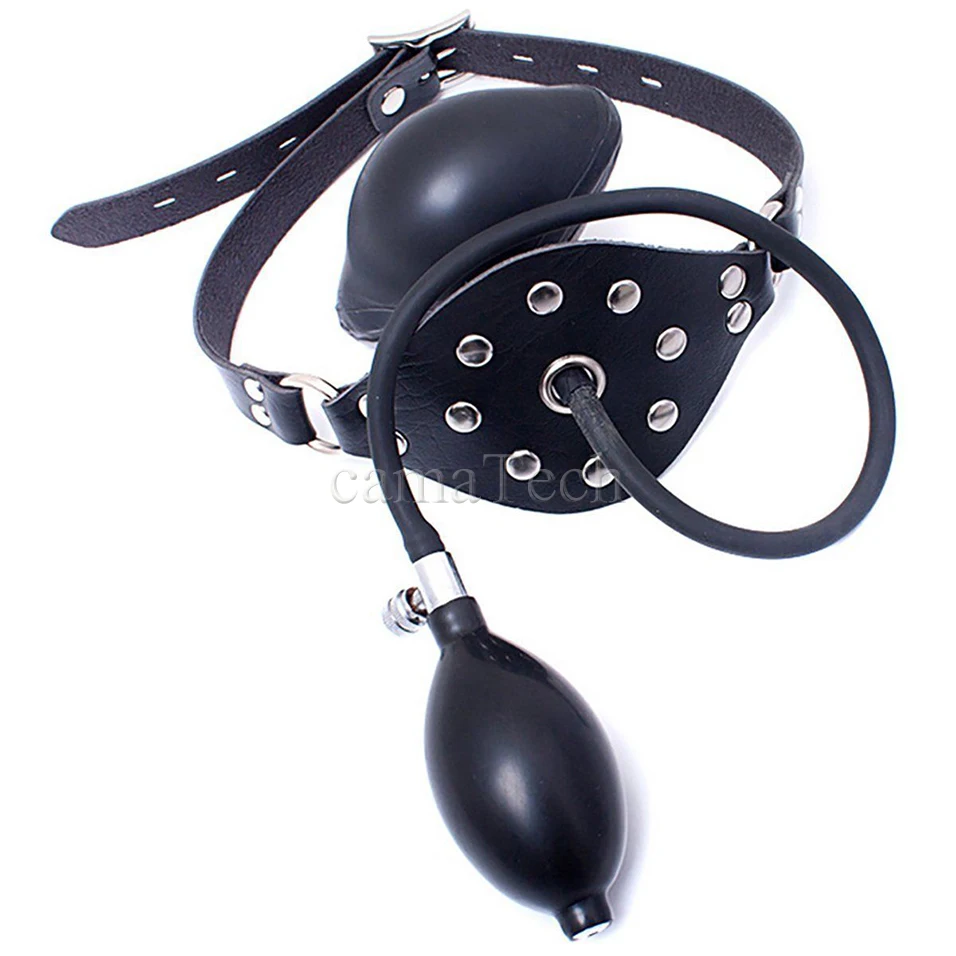 Get camaTech Leather Latex Inflatable Ball Gag Harness Oral Fixation Mouth Stuffed Mask Hood For Couple