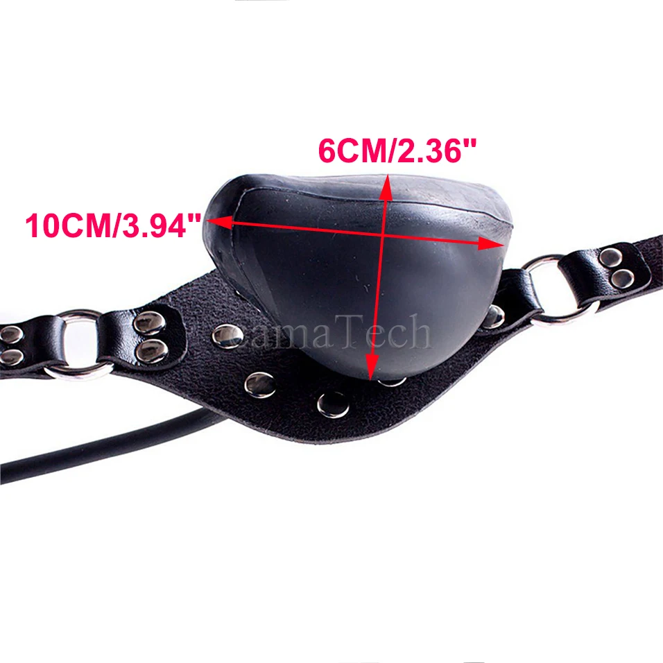 Limited camaTech Leather Latex Inflatable Ball Gag Harness Oral Fixation Mouth Stuffed Mask Hood For Couple