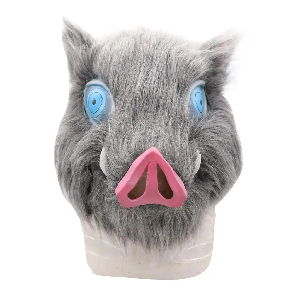 • Limited Inosuke Hashibira Mask Helmet Demon Slayer Kimetsu no Yaiba Cosplay Hood Hair Pig Mask Headwear Hal