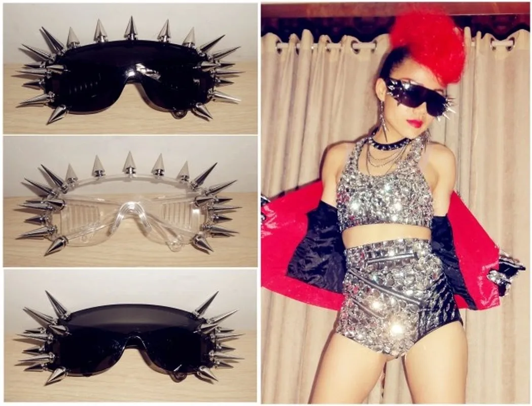 Limited Singer DJ Costumes Stage Glasses Rivets Punk Hip Hop Transparent Windshield Sunglasses Superhero Ma