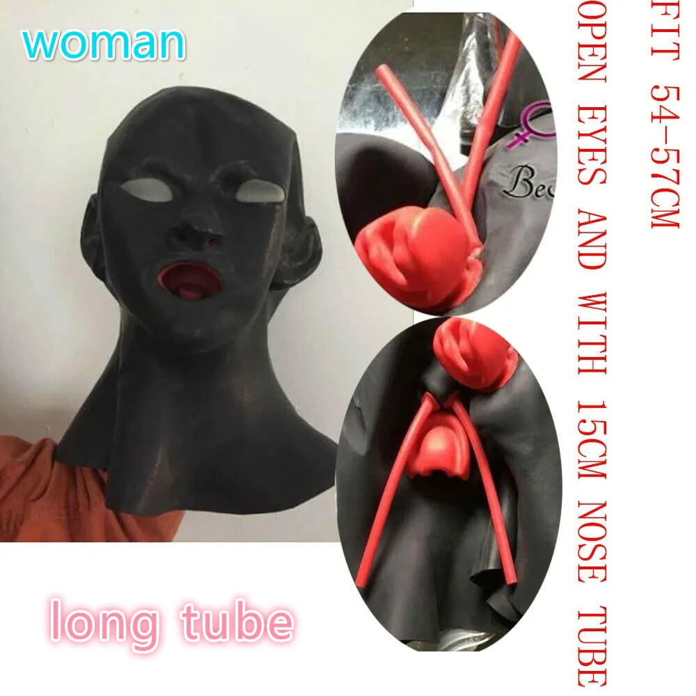 Hot Product women latex mask with 15cm nose tube and red teeth open eyes restraints adult sex toys adult games