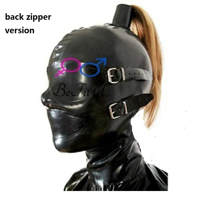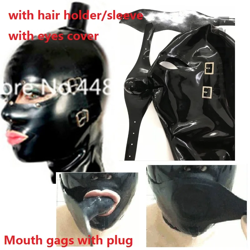 » Special Product Latex Hood with hair hoder rubber Mask including eyes cover and mouth Gags with back zipper availab