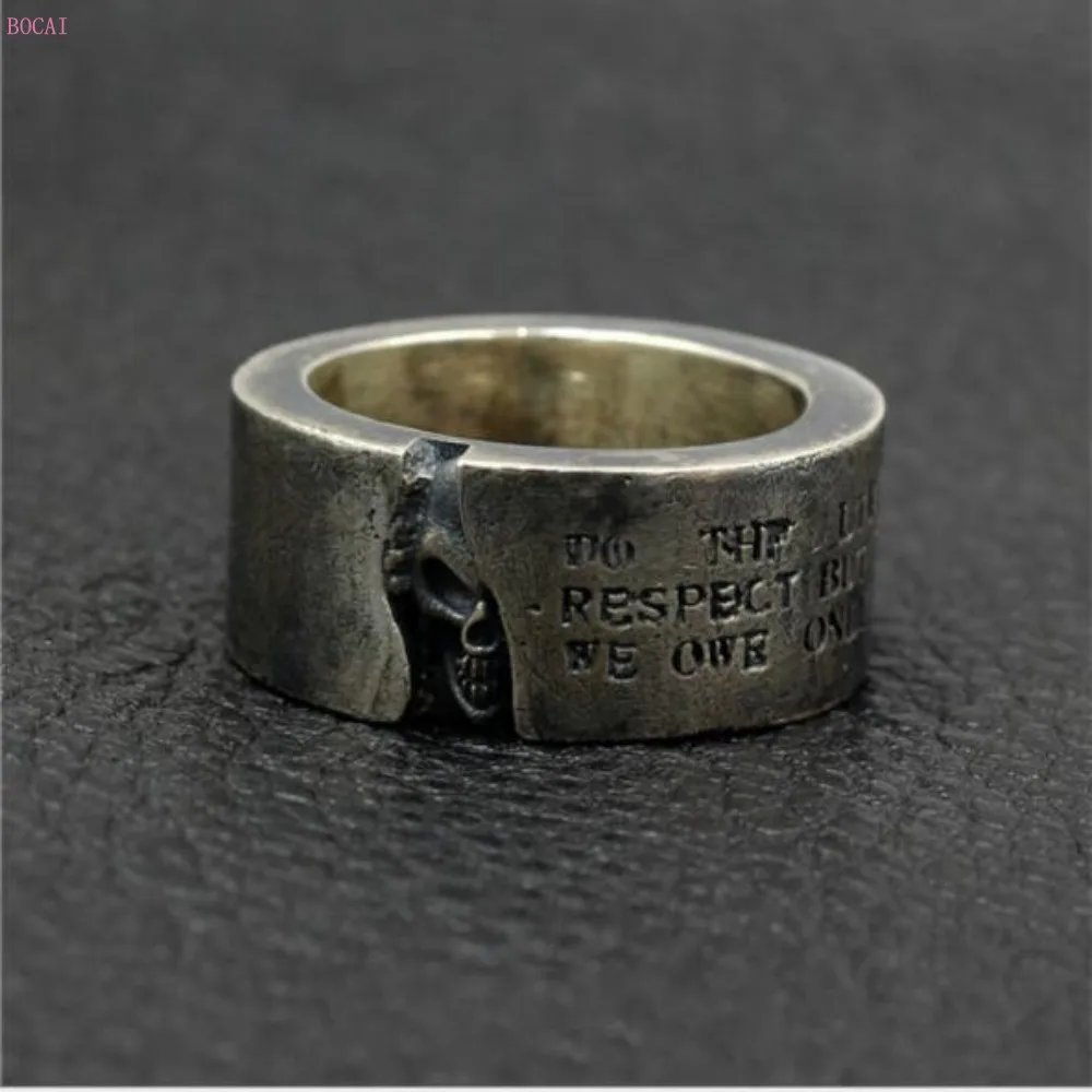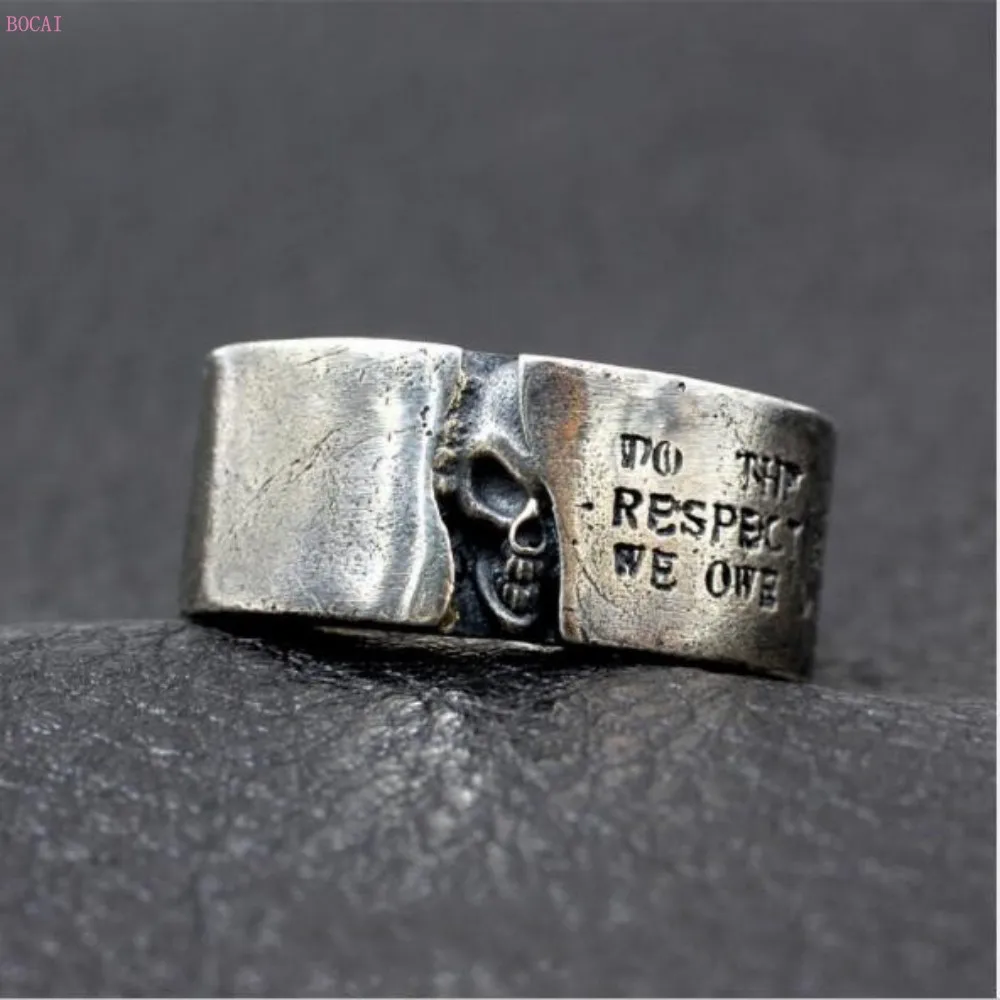 Get 2019 new Half Skull Ring S925 Sterling Silver Thai silver design half mask skull lettering retro ma