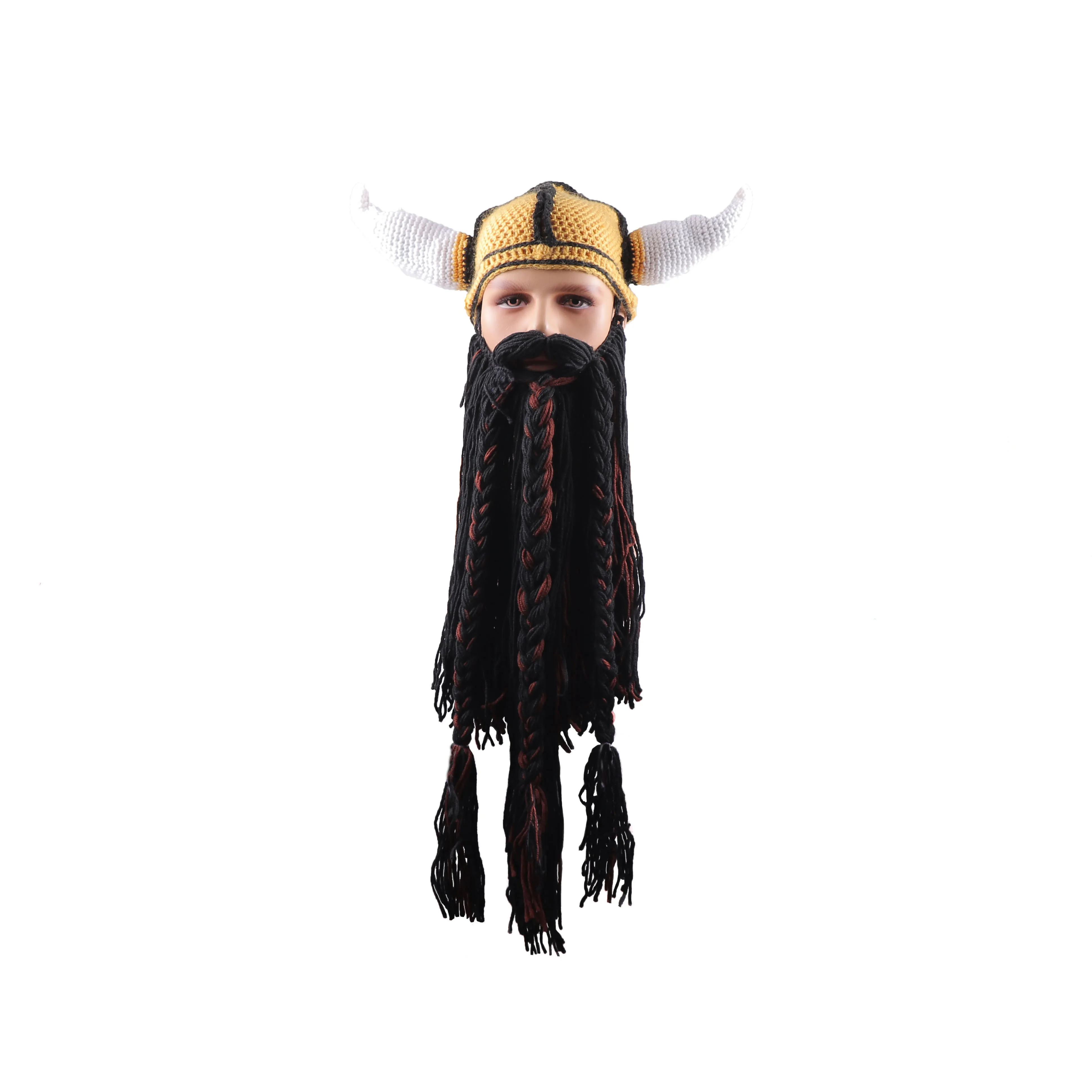 Special 4 Colors Barbarian Vagabond Viking Beard Horn Hats Handmade Knitted Men's Winter Warm Beanie Caps H