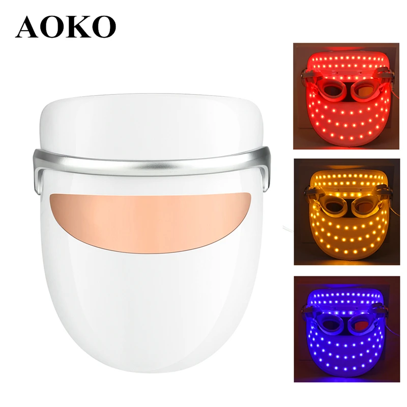 Hot Product AOKO 3 Color LED Facial Mask Skin Rejuvenation LED Photon Therapy Beauty Machine Eye Masssage Acne