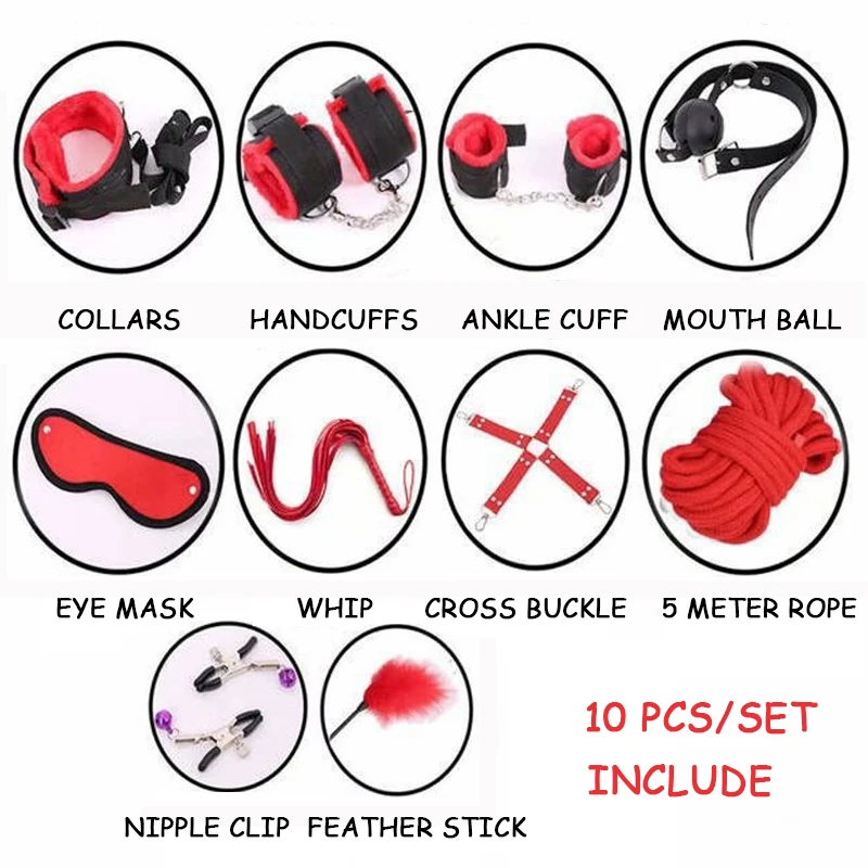 Home » best seller , mask , mask corona » New 10 PCS/Set Nylon Women SM Bondage Sex Toys Kits with Short Plush Handcuff Neck Collar Flirting Stic