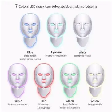 Discount 7 Colors Light LED Facial Mask With Neck Skin Rejuvenation Face Care Treatment Beauty Anti Acne The