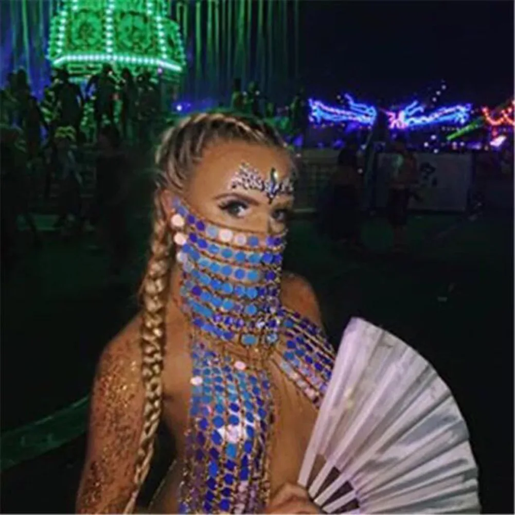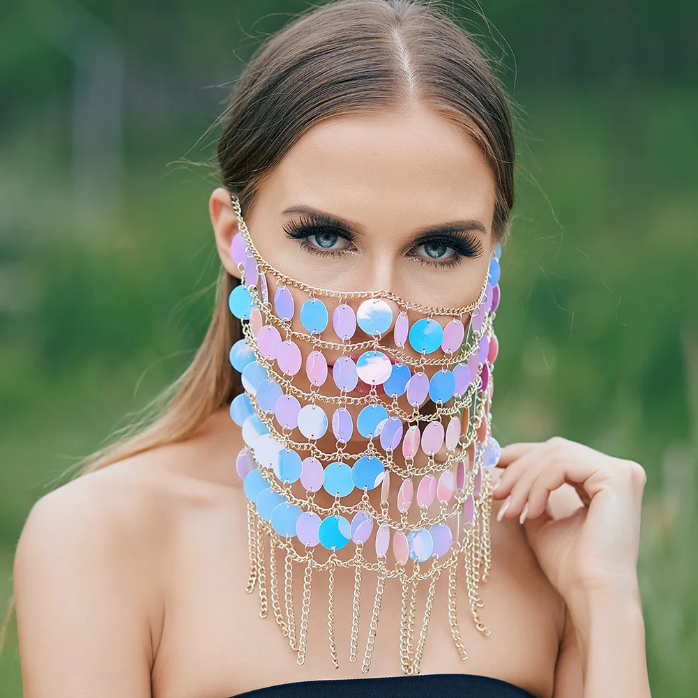 Special Handmade Sequins Round Beading Alloy Mask For Women Vintage Bohemian Dance Show Party Sequined Tass