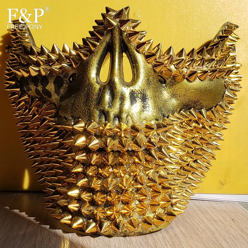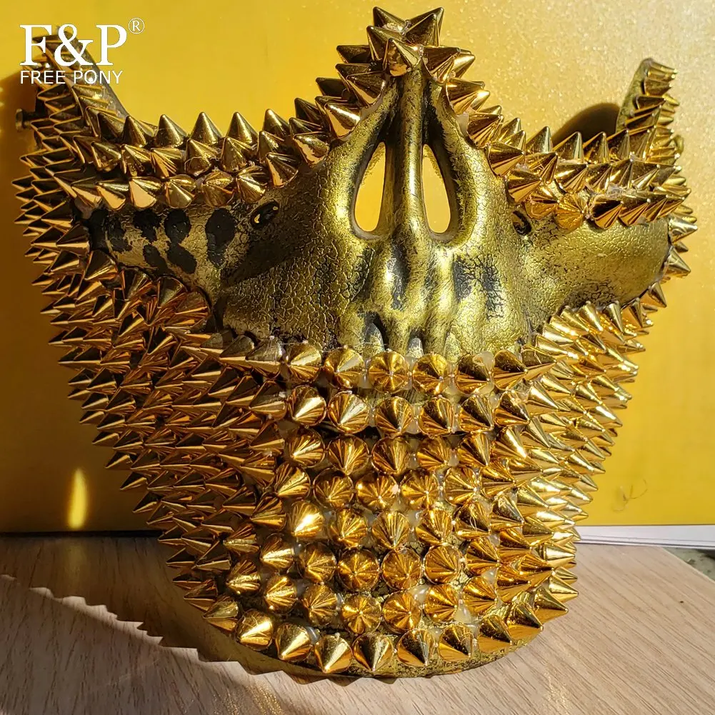 New Burning Man Festival Gold Skull Rivet Spike Mask Drag Queen Costume Gogo Dancer Accessories